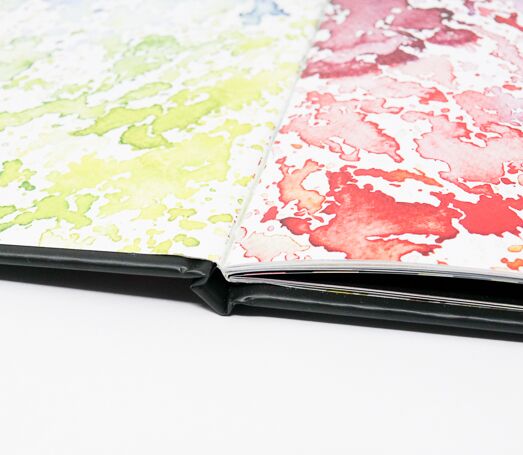 Hardcover 7" x 7" (178mm x 178mm) Square 96 pages printing 4c + varnish x 4c + varnish on 150gsm silk coated stock. Endpapers 1c x 1c on 140gsm uncoated offset. Casewrap printed 4c + anti-scratch matt lamination x 0c on 150gsm silk paper over 3mm board. Sewn signatures, fully cased, square spine with head and tail bands. Tags: Casebound Book, Hardbound Book, Matte Lamination